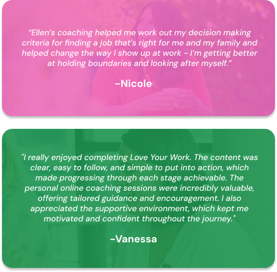 My Love Your Work program helps you get really clear on the career you want, and the steps to take to go and get it, even when you have a million plates spinning.